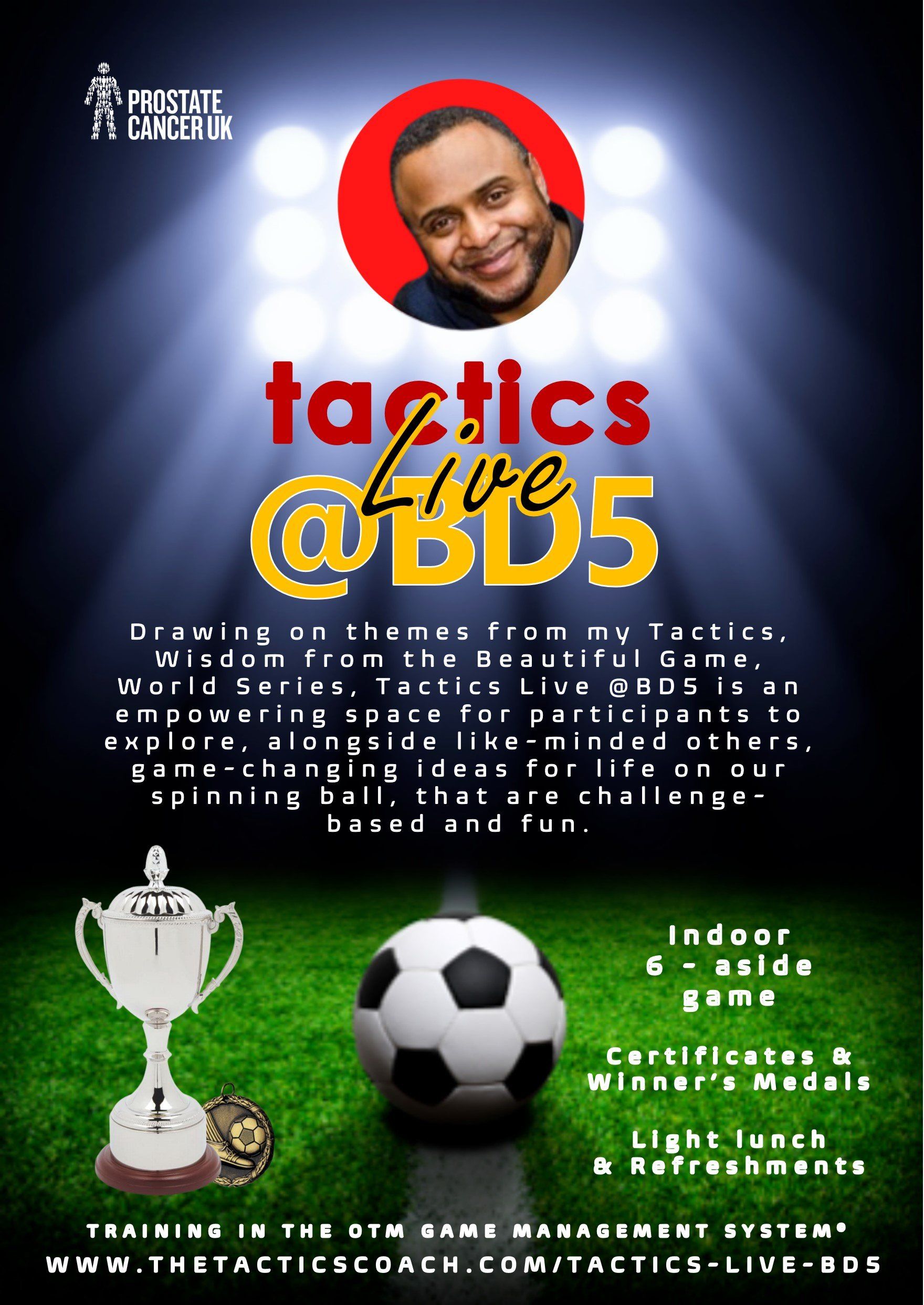 "This could be your moment in the Game of your life to level up your impact on the ball; to leave a positive mark on the Game that is remembered and celebrated before you are done, and long after you have gone. Tactics Live @BD5 awaits your sign up.